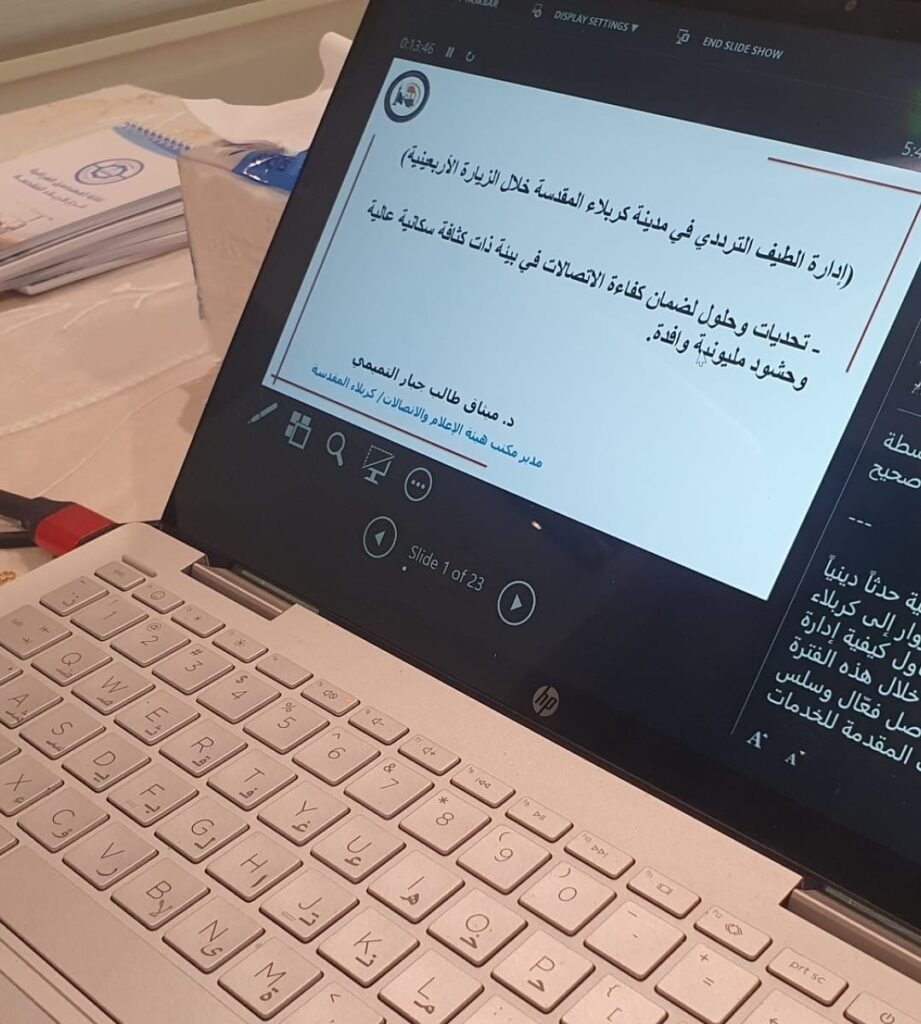 وتضمّنت الورشة محاضرة ألقاها الدكتور ميثاق طالب، مدير مكتب هيئة الإعلام والاتصالات في كربلاء، بحضور نقيب المهندسين المهندس محمد فاضل، حيث جرى استعراض جهود الهيئة في تنظيم وإدارة الطيف الترددي خلال الزيارات الدينية الكبرى، بالتنسيق مع المؤسسات الحكومية وشركات الهاتف النقال، ضمن مركز المدينة والمحاور المؤدية إليها.