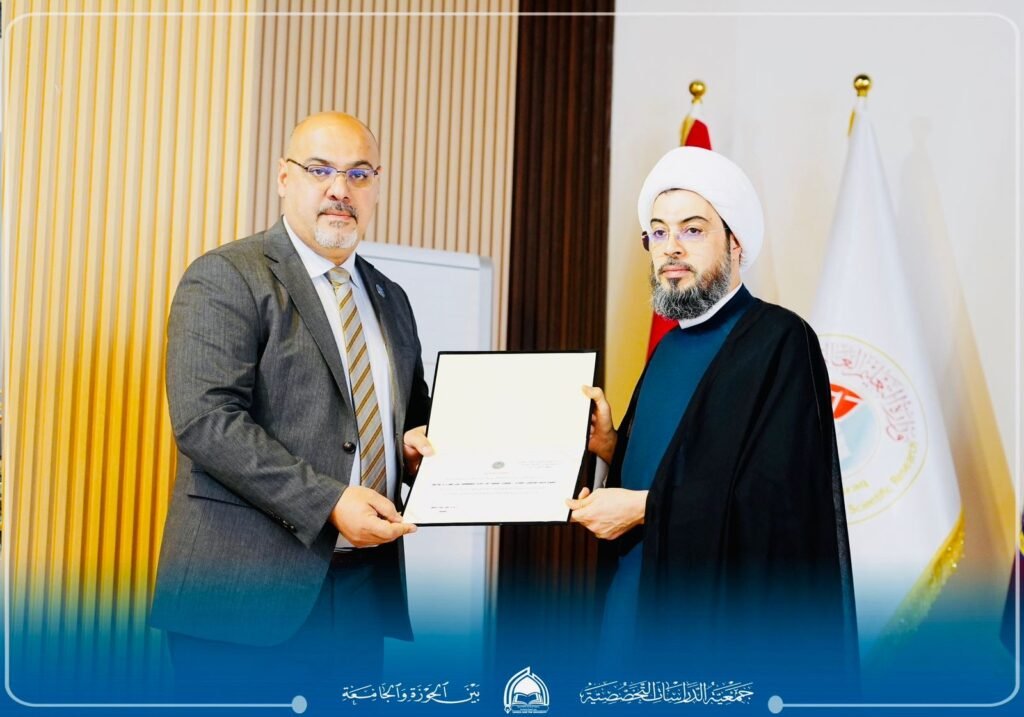 وحضر الندوة عميد المعهد الأستاذ الدكتور علي ناجح، إلى جانب نخبة من الأساتذة والطلبة، فيما ألقى المحاضرة رئيس الجمعية سماحة الشيخ قاسم الهاشمي، وسط تفاعل نوعي وحضور مميز.