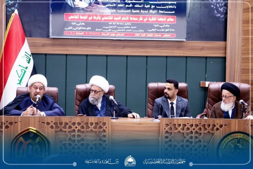 شهدت جامعة الكوفة حضوراً علمياً وثقافياً واسعاً في الندوة العلمية التي أقامتها جمعية الدراسات التخصصية بين الحوزة والجامعة بالتعاون مع كلية الفقه – جامعة الكوفة، وذلك بمناسبة مرور أربعين يوماً على شهادة شهيد الأمة سماحة آية الله العظمى الامام السيد علي الحسيني الخامنئي (قدس سره)، تخليداً لمواقفه التاريخية ونهجه الرسالي الخالد.